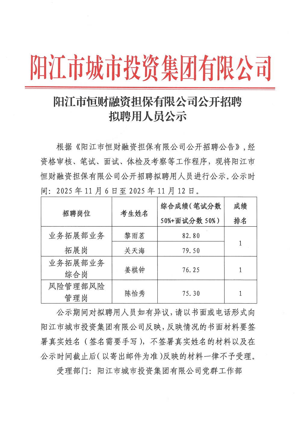 陽江市城投新能源發(fā)展有限公司、陽江市數(shù)字科技發(fā)展有限公司、陽江市恒財(cái)融資擔(dān)保有限公司、陽江市城投物流有限公司公開招聘公告